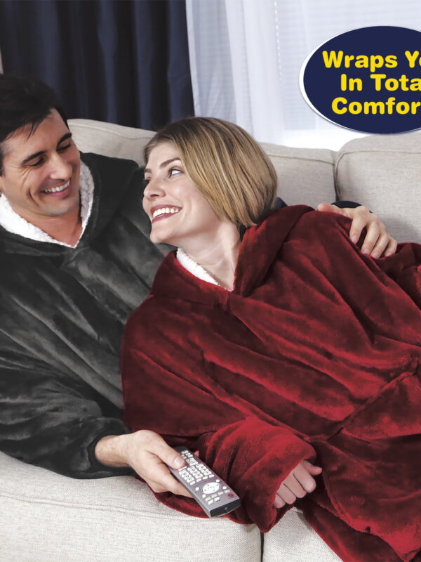 • Huggle Blanket Hoodie, Ultra Plush Blanket, Wearable Blanket for Men and Women, One Size, Grey