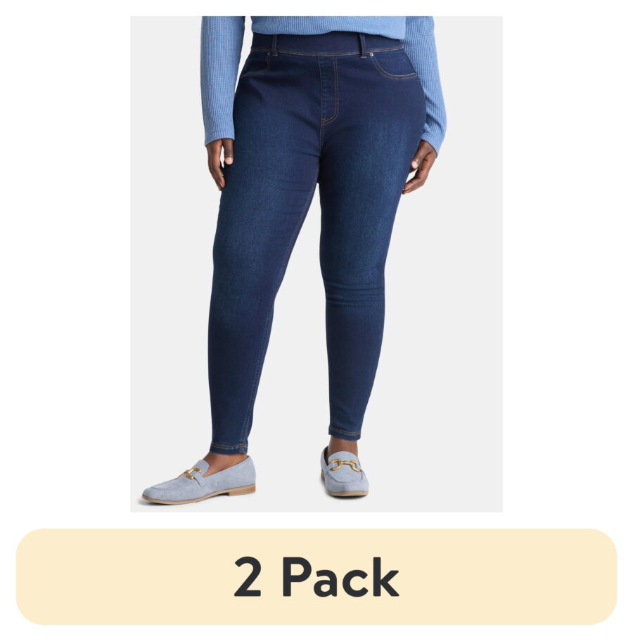 (2 pack) Terra & Sky Women’s Plus Size High Rise Jeggings, 28″ Inseam, Sizes 0X-4X