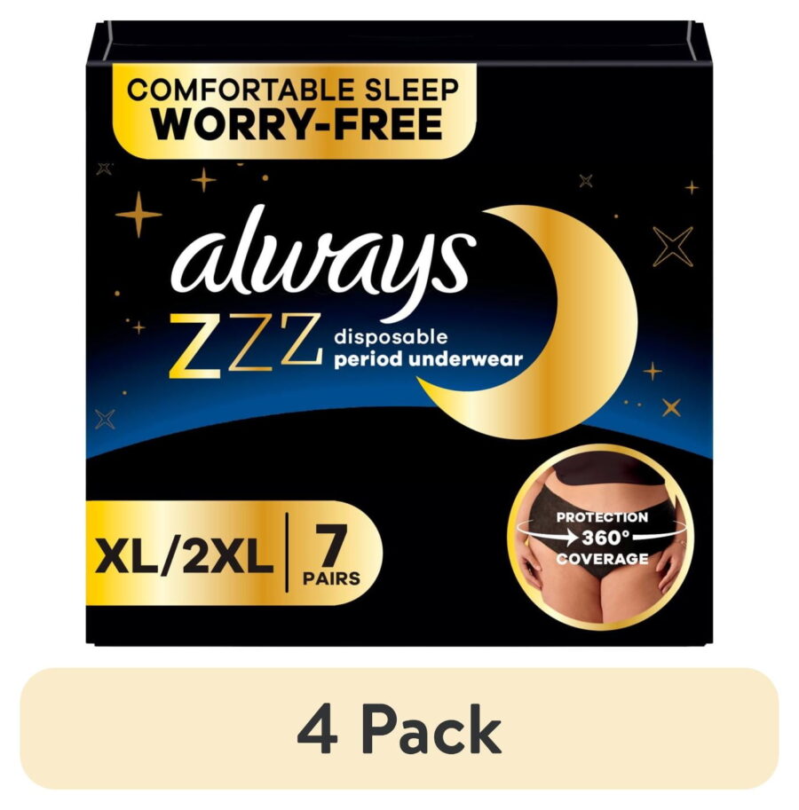 - Always ZZZ Overnight Disposable Period Underwear for Women Sz XL, 360 degrees Coverage for Worry-Free Nights, 7 Count