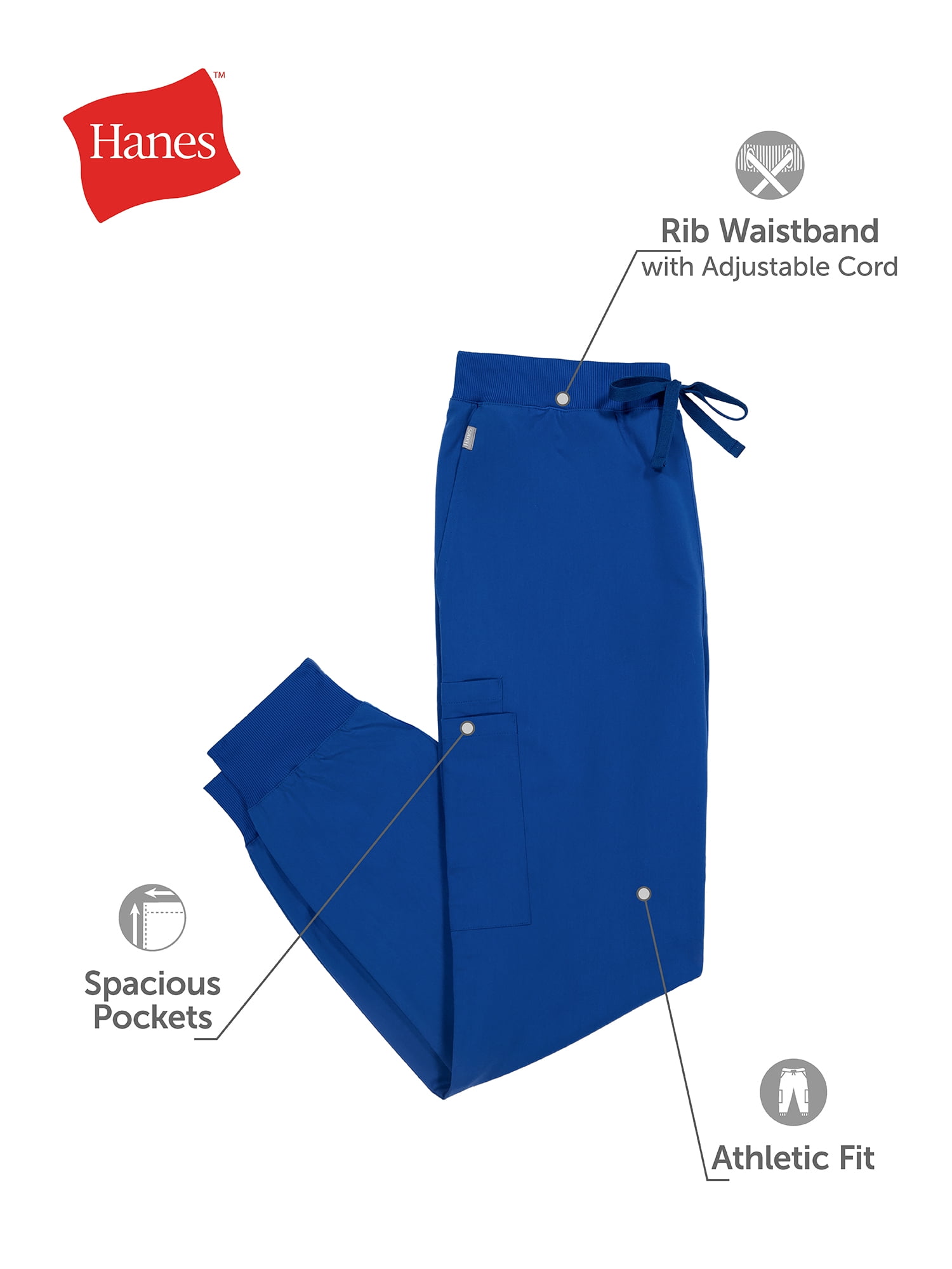 MADE FOR THOSE THAT MAKE A DIFFERENCE Scrubs that work as hard as you do. Introducing Hanes Comfort Fit Scrubs – a perfect blend of comfort, innovation, style, and value. These scrub joggers stretch comfortably in all the right places for enhanced flexibility to keep you going all day, A variety of pockets and easy-to-access built-ins help you work your shift in ease. An athletic style, these scrub cargo joggers are detailed with a ribbed waistband and adjustable cord with faux zip fly detailing. Pair with our coordinating scrub top for a stress-free workwear option. Hanes Comfort Fit Scrubs – make yourself comfortable.