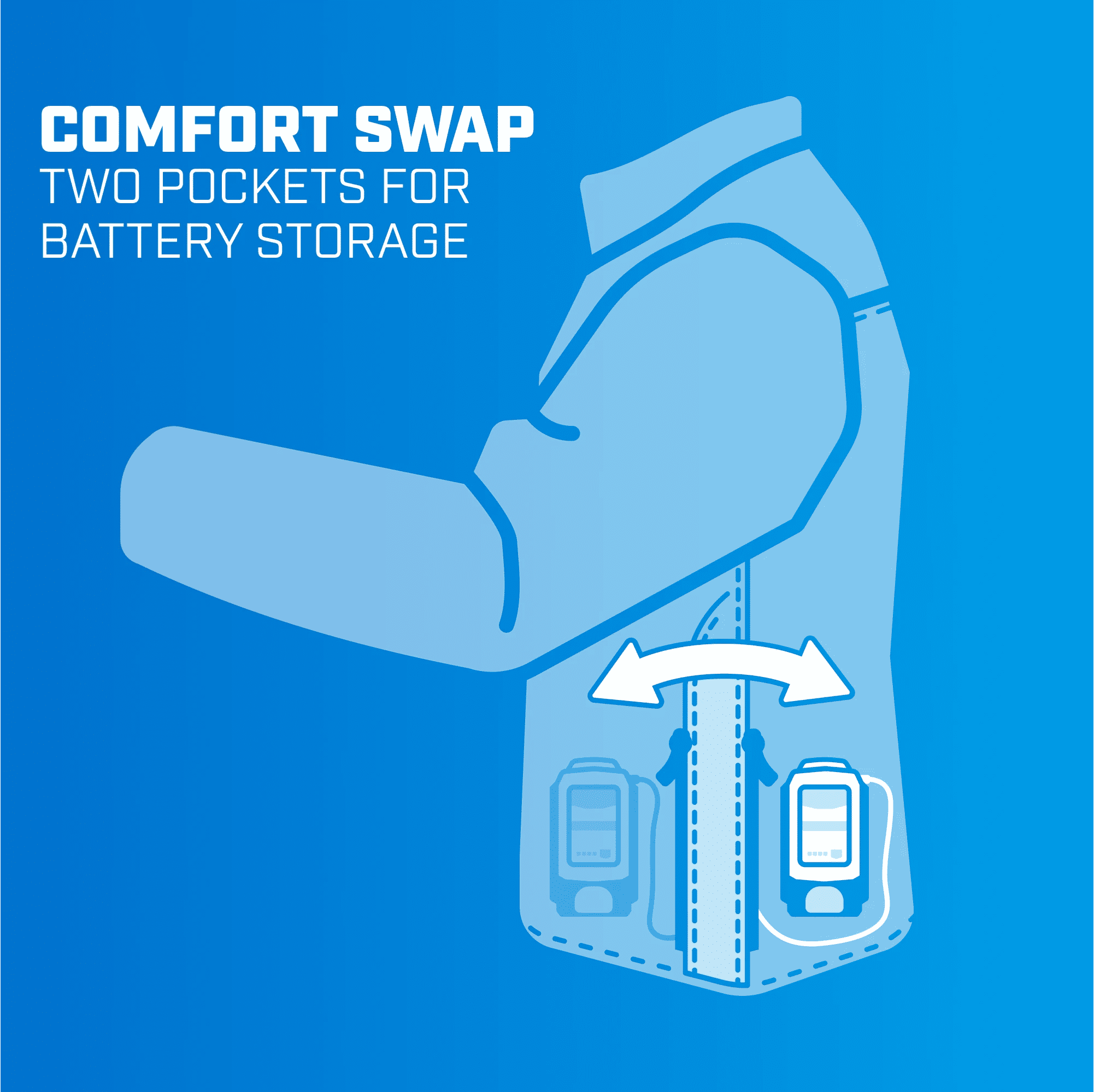 - 3 heating zones: Left chest, Right Chest, Mid-Back