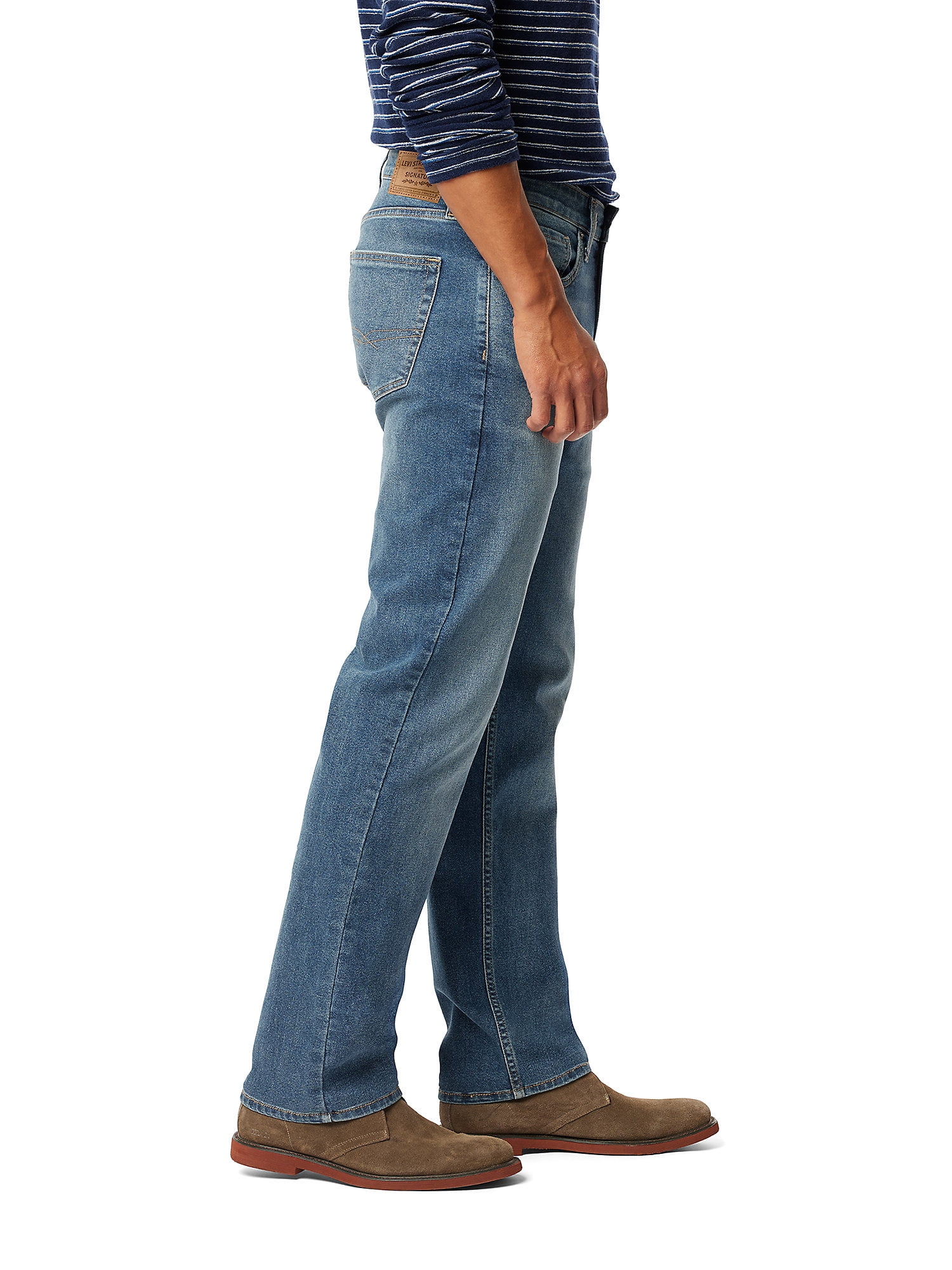 Levi Strauss Signature Men’s Straight Flexible Waistband Jeans are the pair to wear when you want a comfortable, 5-pocket look with a flexible waistband that’s tidy but not tight. The fit is straight through seat and leg, but the denim moves with you, so they don’t feel tight. Top with your favorite T-shirt or hoodie for an outfit that feels as good as it looks.