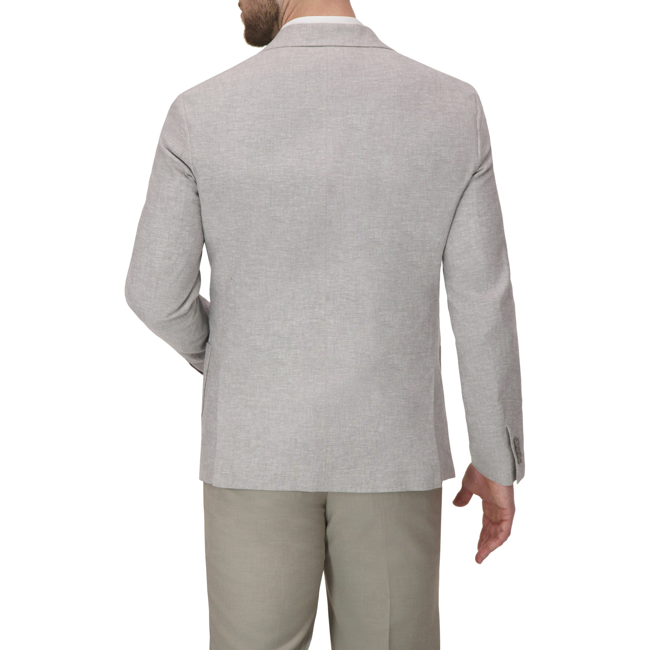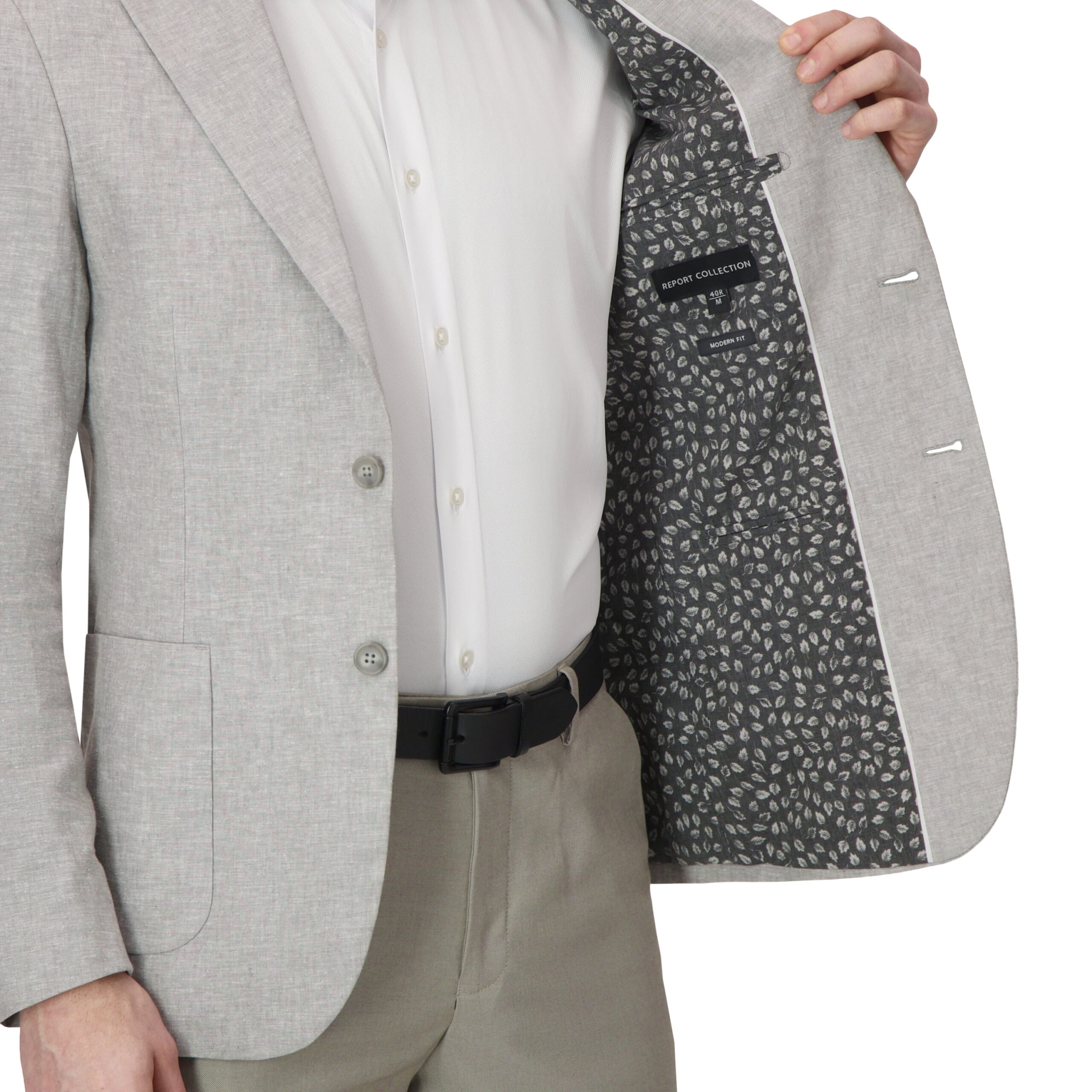 Step into refined style with the Report Collection Men’s Linen-Blend Blazer in light grey. Crafted from a breathable blend of 55% linen and 45% cotton, this single-breasted jacket is fully lined for a polished look. Designed with mo…