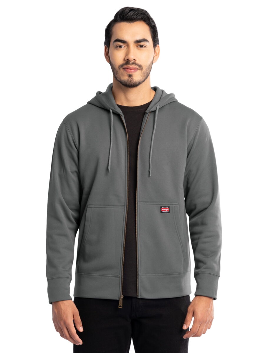 - Wrangler Workwear Men’s Full Zip Performance Fleece Hooded Work Jacket, Size S-5XL